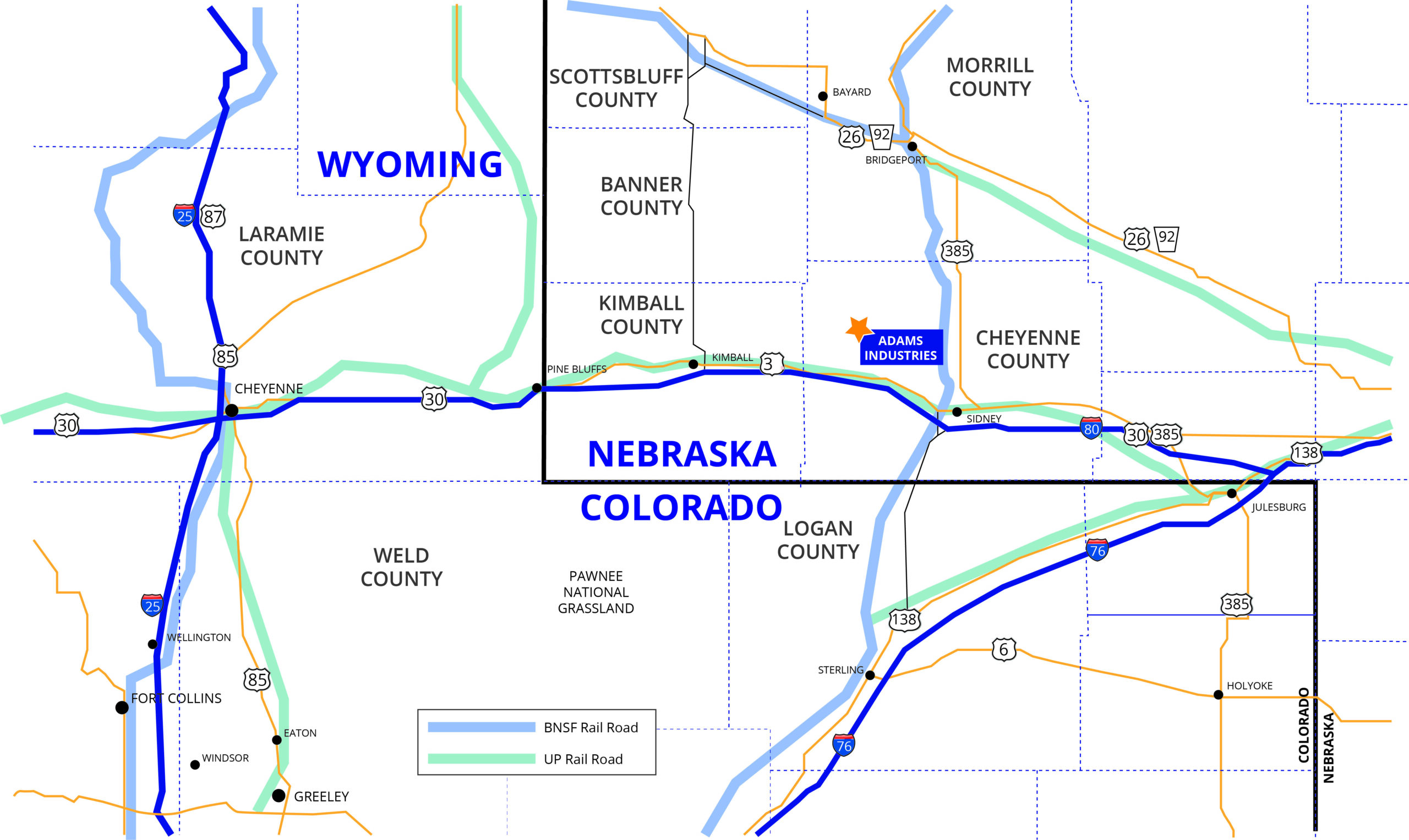 • Adams will be able to provide you with a variety of services to help enhance your competitive advantage, including: truck, rail transportation, transloading, and warehousing storage